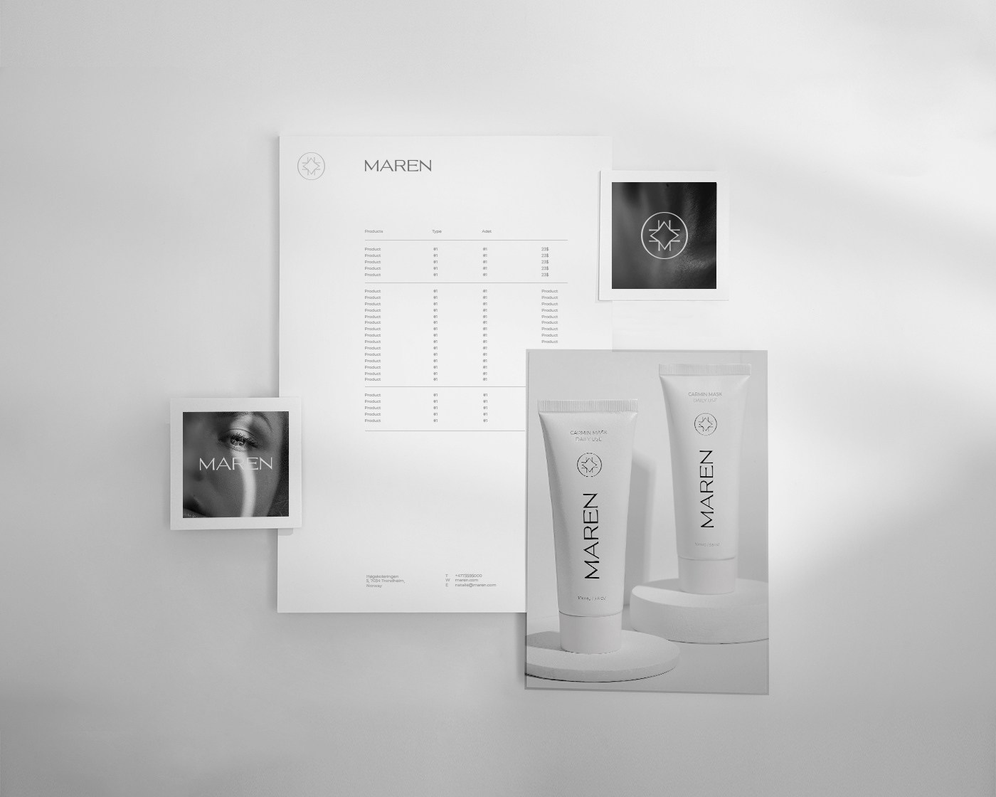 MAREN is a Norwegian based skin cream brand. With our corporate identity, gray colors were chosen as a reference to the northern idea of the brand.